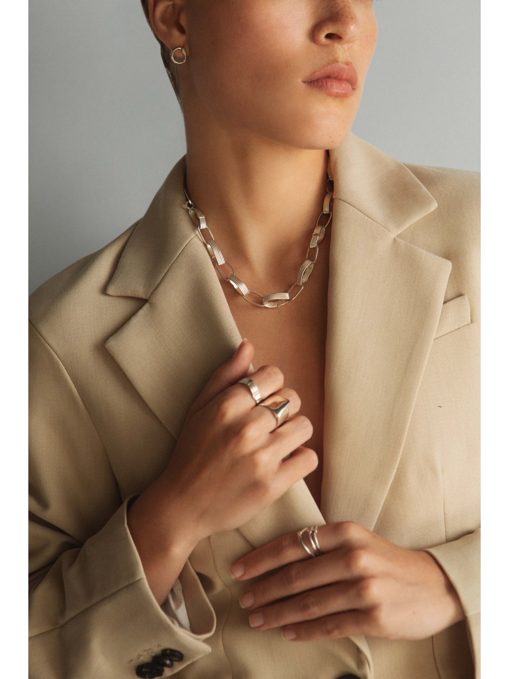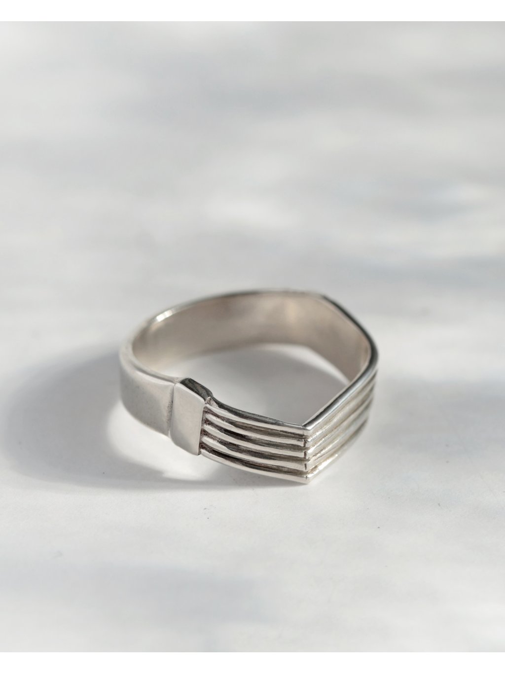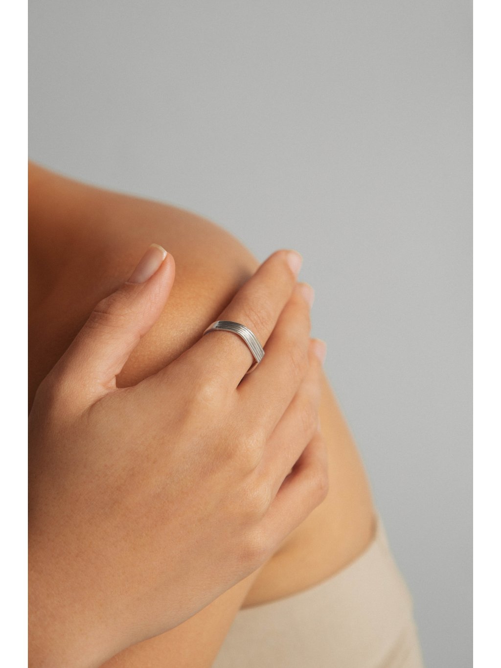 The F Ring is a minimalist and delicate piece, featuring a unique textured section combined with a highly polished classic band.