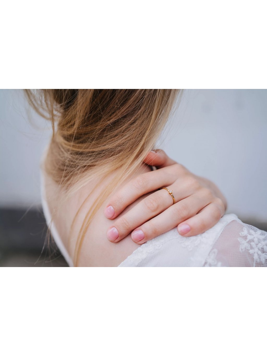 Lasse is a delicate & elegant ring made of 14K solid gold set with 2,5 mm round brilliant cut white diamond.