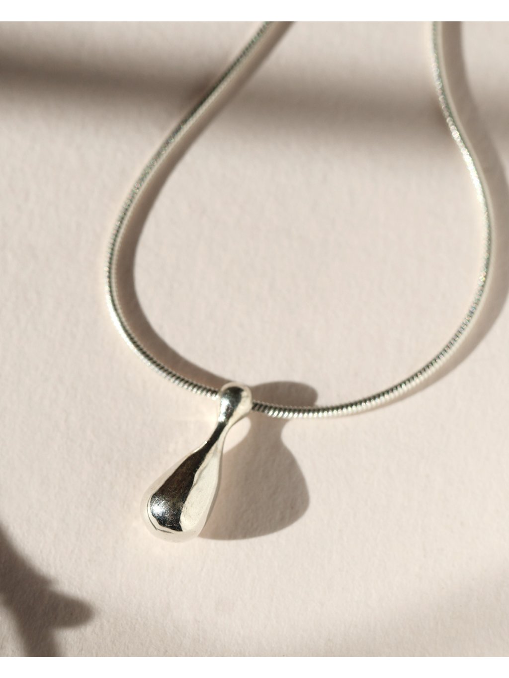 This elegant necklace features a hand crafted sterling silver teardrop pendant in a high polish finish.