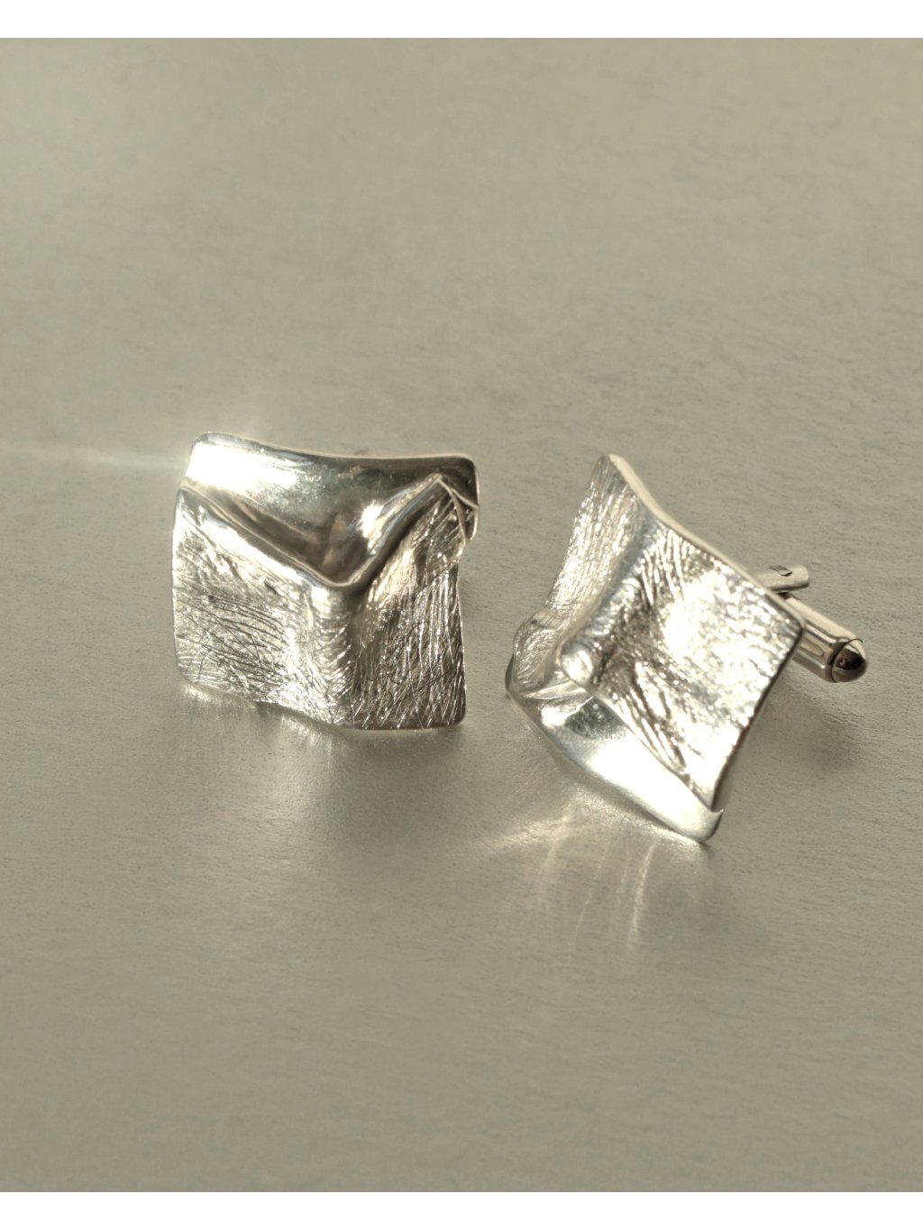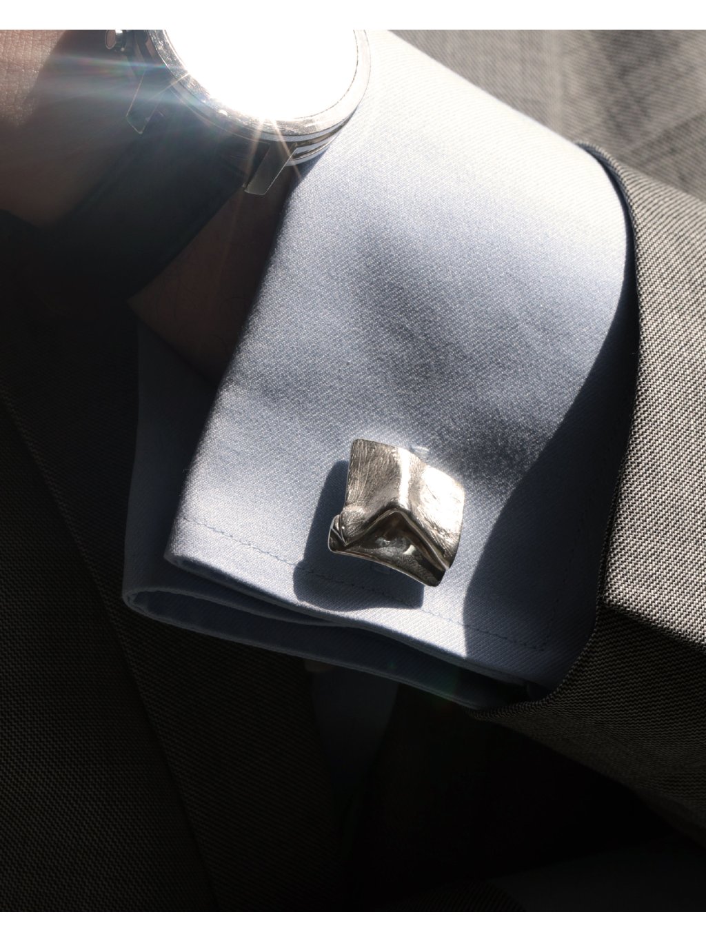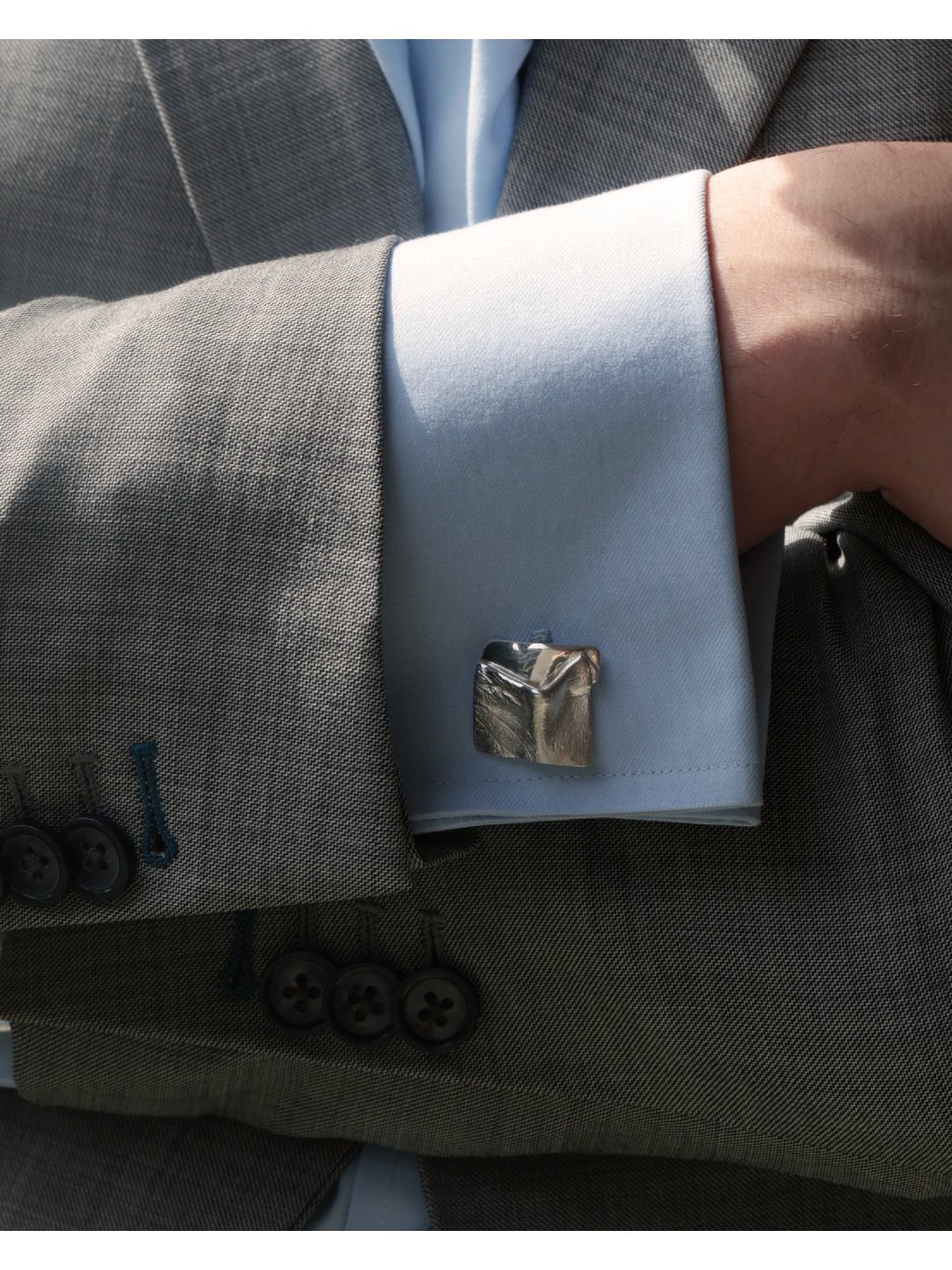 The Wave Cufflinks taking the shape of a soft square with flowing lines and a convex part reminiscent of a rising wave.