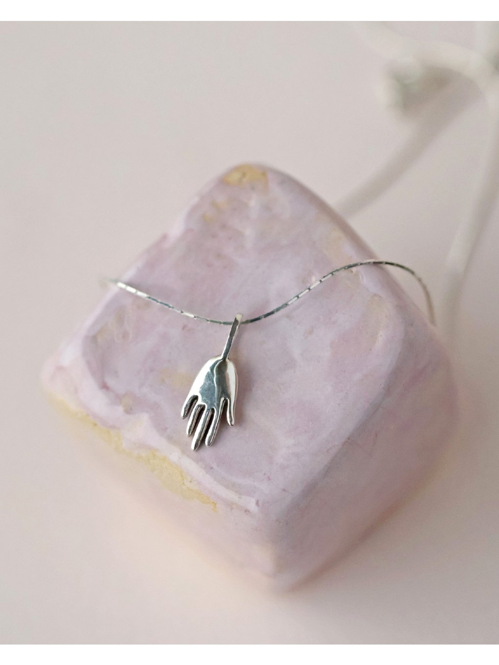 Hamsa is an elegant and unique silver pendant, made of 925 sterling silver paired with a long thick chain.