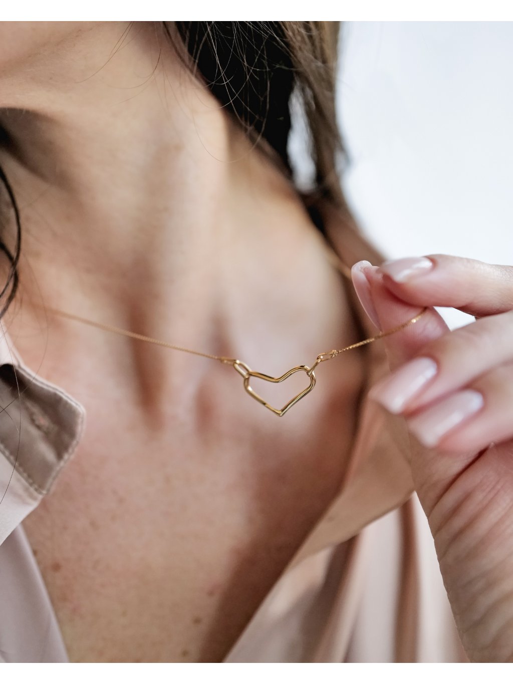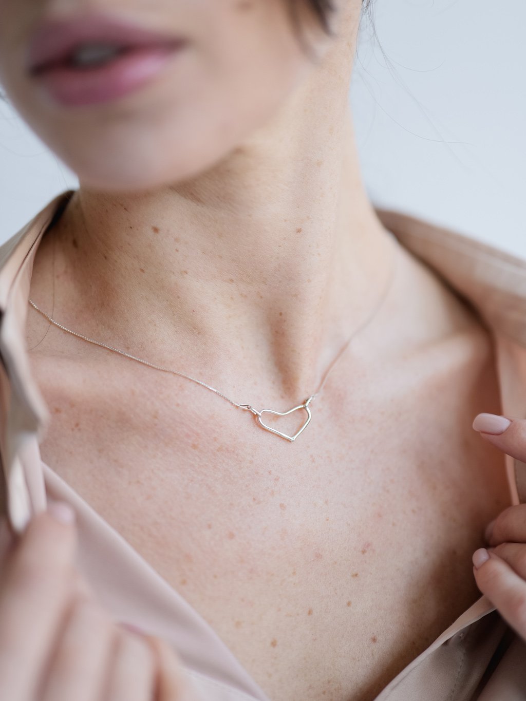 Jemný & minimalistický. Ladné organické křivky srdíčkového přívěsku Lev (hebrejsky: "לֵב" (lev)- "srdce") doplňuje výrazný řetízek. Kompozice náhrdelníku tak působí velice žensky a poutavě. Vyrábíme jej ve variantách stříbrného nebo pozlaceného provedení s lesklou povrchovou úpravou.