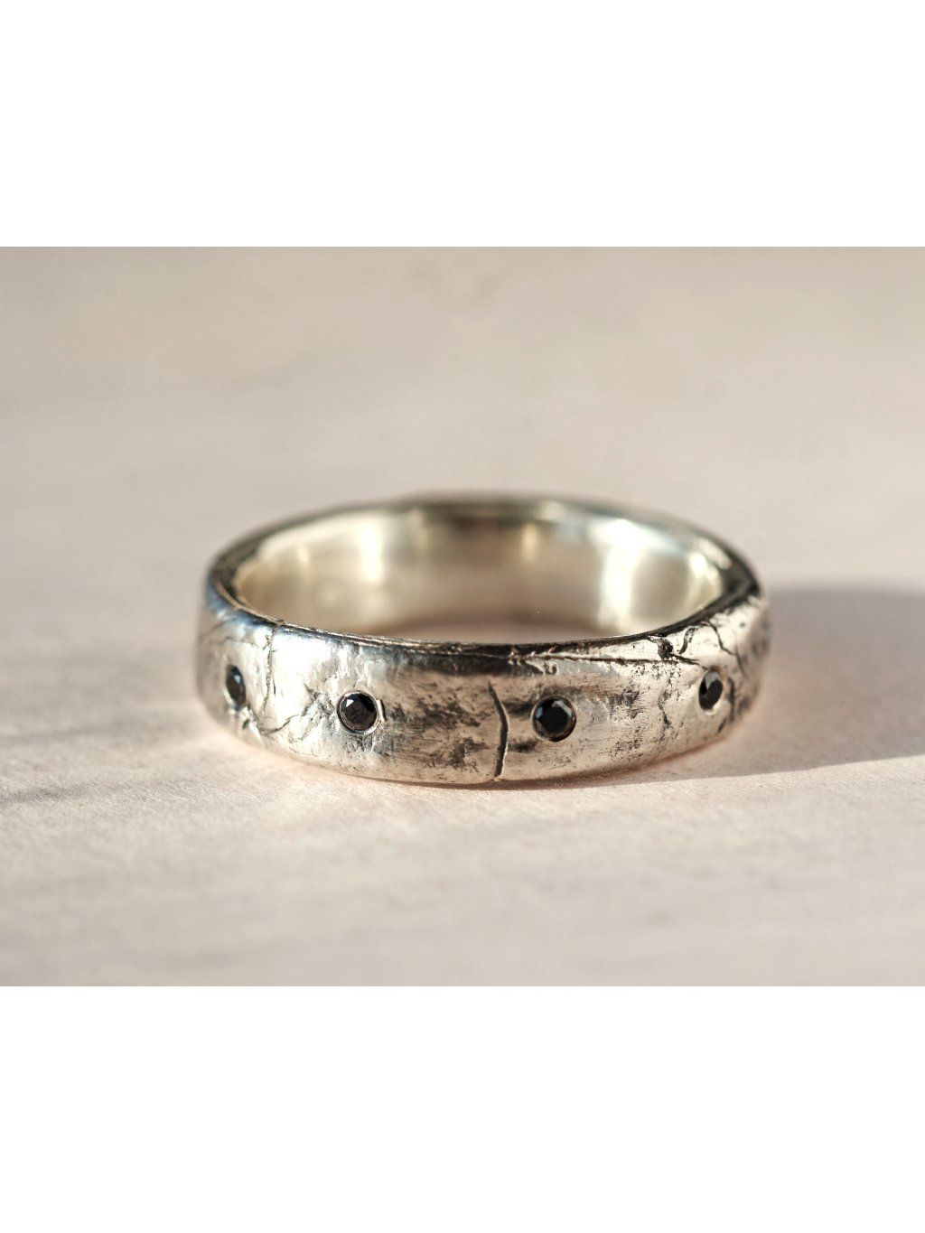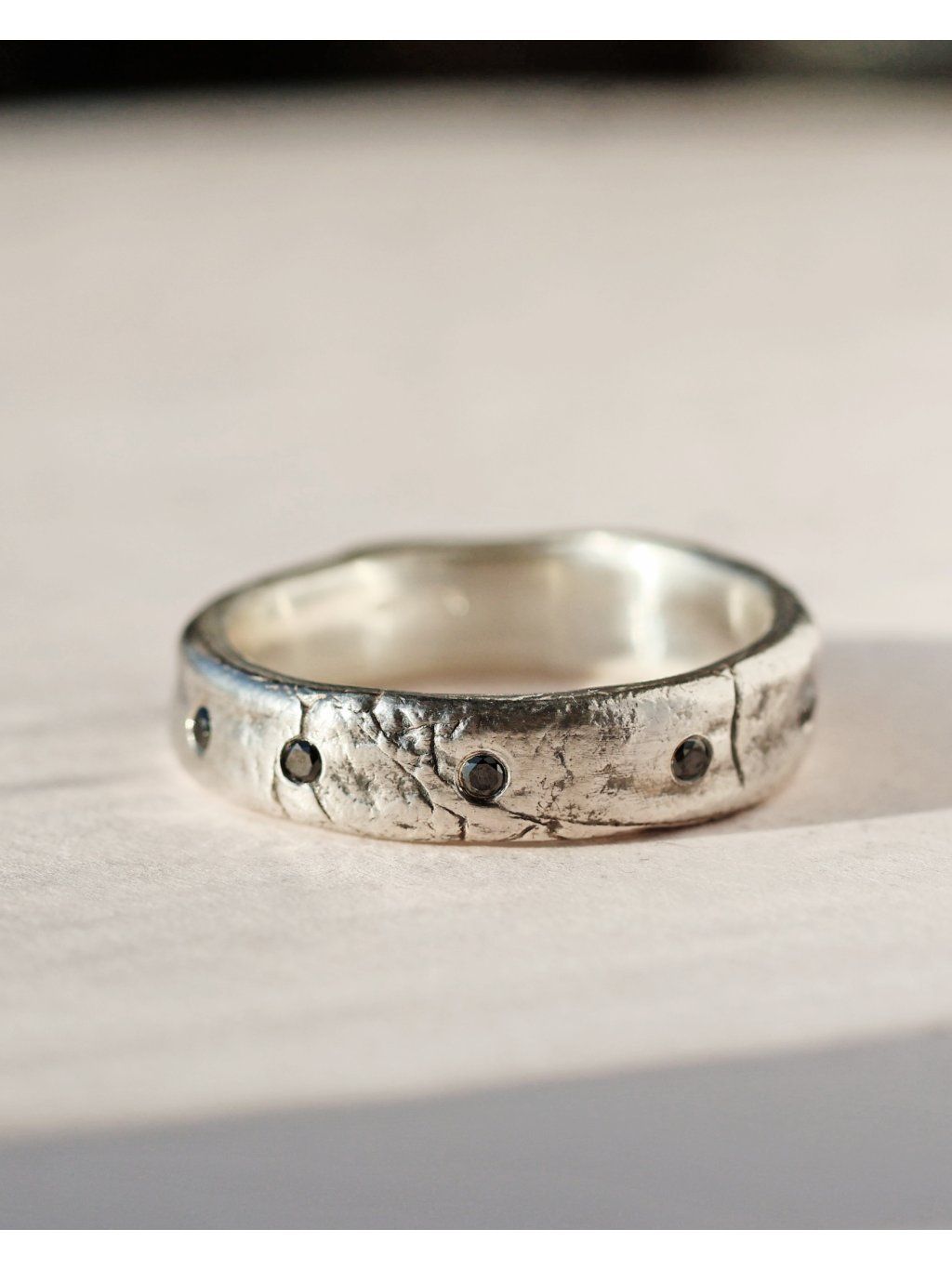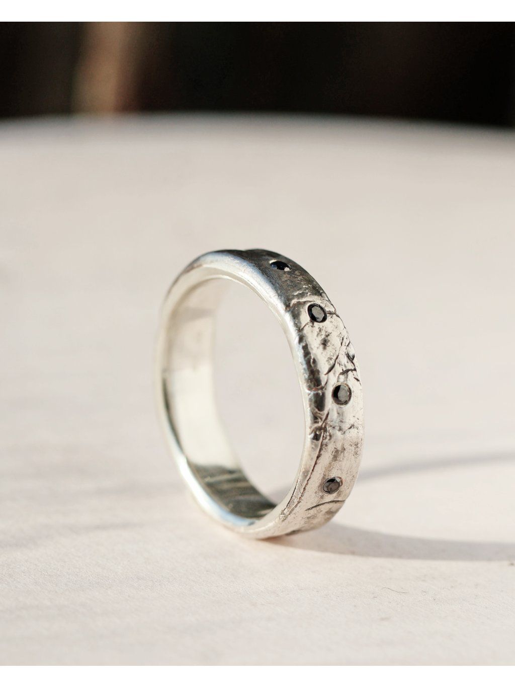 The stone-set version features ten natural black diamonds (the exact number may vary depending on ring size).